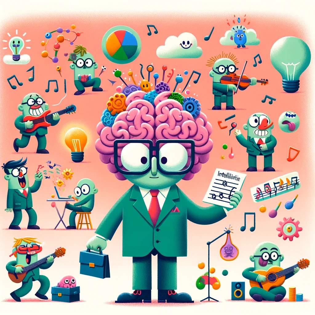 ChatGPT: fun and whimsical image illustrating the text about intelligence as a soap bubble, with various people excelling in different areas and the metaphor of a bubble about to be popped. The dreamy and surreal atmosphere captures the playful yet thought-provoking nature of the concept.